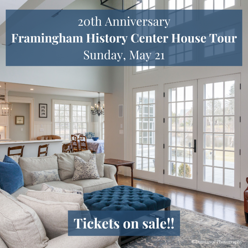 The Framingham History Center is celebrating 20 years of the Framingham House Tour and welcoming back our first in-person tours since 2019! For this momentous occasion, join us for a self-guided tour of six unique builds ranging from the oldest standing dwelling in the City to a 5,000 square-foot estate overlooking John Macomber’s former Raceland. Enjoy complimentary refreshments along the way as well as the opportunity to reconnect with friends.