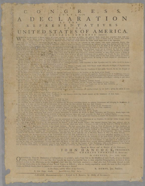 This panel presentation is part of "Declaring Independence: Then and Now," a region-wide commemoration and exploration of the Declaration of Independence presented by Freedom’s Way National Heritage Area and the AAS." This program features a forty-minute public performance piece in which a narrator and five costumed re-enactors bring to life the Declaration of Independence followed by an audience discussion. Performances will take place throughout Massachusetts from April through the July 4th holiday. For more information on this program, please see www.freedomsway.org.