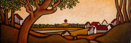 Internal Landscapes brings together fifteen recent works in acrylic on paper, wood and canvas by Ithaca-area artist G. C. Myers. His crisp, clean compositions, bold coloration and stylized renderings transform the natural landscape into one that resonates with human emotions and qualities.