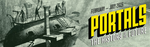 Our 2016 exhibition, PORTALS: The History of the Future, highlighted the material trails left by the people of the past as they looked to the future, including imaginative visions of futures that never came to pass, illustrations of fantastical contraptions, reflections on the nature of time, and other artifacts testifying to a human desire to visit eras besides our own.