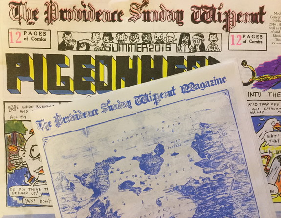 Cases will feature original drafts of comics from the most recent issue of Providence Sunday Wipeout, including work by 2016 Creative Fellow Walker Mettling, Jeremy Ferris, Dailen Williams, and others; candles from Burke & Hare Co. featuring historic images from Special Collections; song lyrics by Joe DeGeorge based on records in the Rhode Island index; futuristic headdresses and clothing designed by teens with instruction through RISD Continuing Education; sketches, letterpress prints, 2-dimensional action figures, and more!