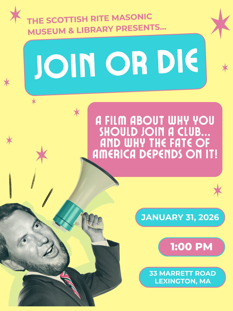 Join us at the Scottish Rite Masonic Museum & Library at 1:00 pm for a screening of the 2024 documentary, Join or Die. In this Emmy-nominated film, follow the half-century story of America’s civic unraveling through the journey of legendary social scientist–and former Lexington resident–Robert Putnam. Putnam’s groundbreaking book Bowling Alone and his research into America’s decades-long decline in community connections could hold the answers to our democracy’s present crisis.