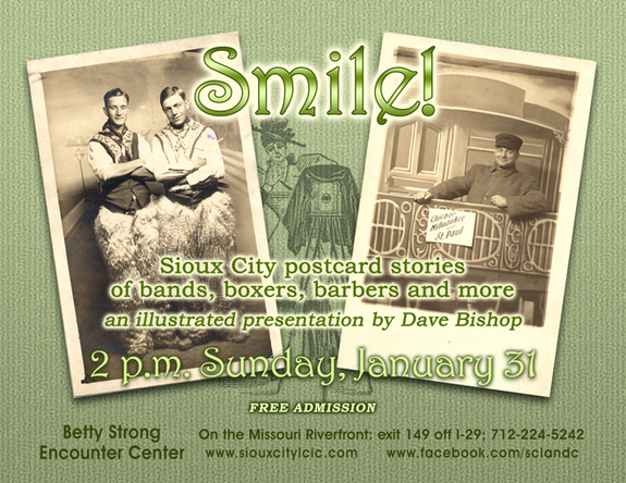 The Betty Strong Encounter Center will present “Smile: Sioux City Postcard Stories of Bands, Boxers, Barbers and More” with Dave Bishop at 2 p.m. Sunday, Jan. 31. Admission will be free.