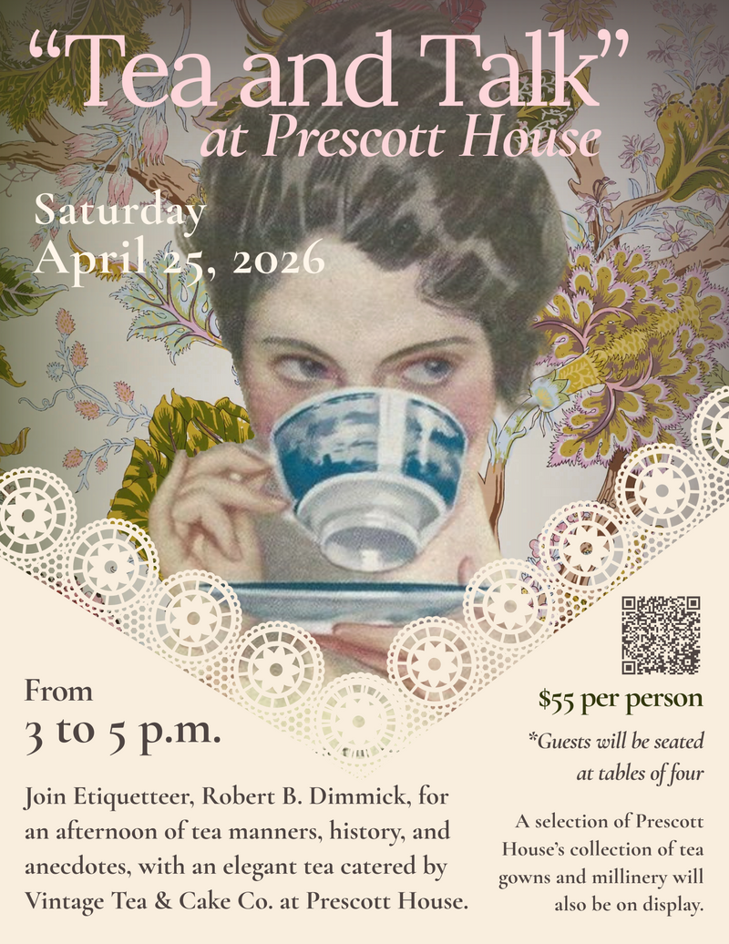 Join Etiquetteer, Robert B. Dimmick, for an afternoon of tea manners, history, and anecdotes, with an elegant tea catered by Vintage Tea & Cake Co. at Prescott House, the Beacon Hill headquarters of the Colonial Dames (NSCDA-MA).