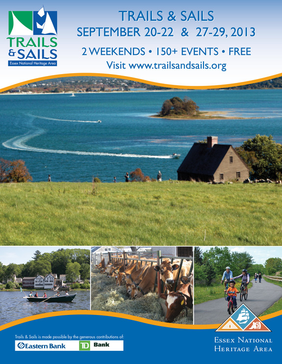 Explore Essex County's cultural, historic and natural sites during two weekends of 150+ FREE events during Trails & Sails: Two Weekends of Walks and Water, September 20-22 & September 27-29, 2013! Enjoy a variety of guided tours, open house visits, hikes, walks, paddles, and other special experiences for all ages, skill levels and interests. All events are located within the 34 cities and towns of Essex County - the 500 sq. mi region just North of Boston, Massachusetts - including the communities of Salem, Gloucester, Newburyport, Andover, Saugus and many more.